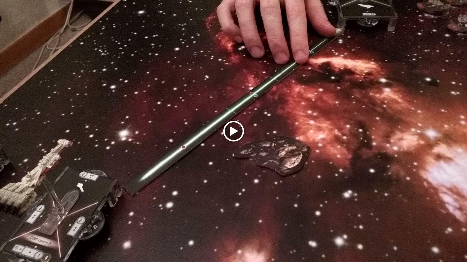 With the gap closing, Screed's VSD coming from the top left tries to shoot the next Corellian Corvette, but she is just barely out of range. I leave it to you to decide if it was luck or skill on my part, but I definitely tried to play my best game. |